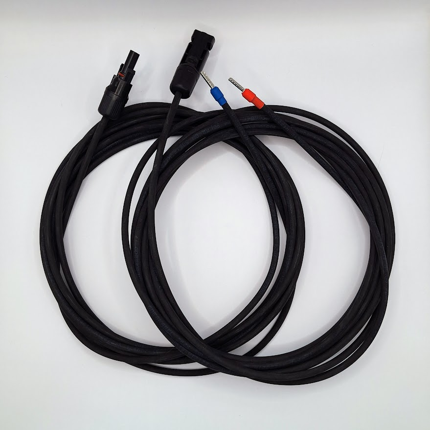 Кабель сонячний H1Z2Z2-K 4 мм2 довжиною 5м для з'єднання сонячних панелей з контролером заряда АКБ. З одного боку має конектори МС4 (тато/мама) з іншого штирьовий накінечник 4мм2.