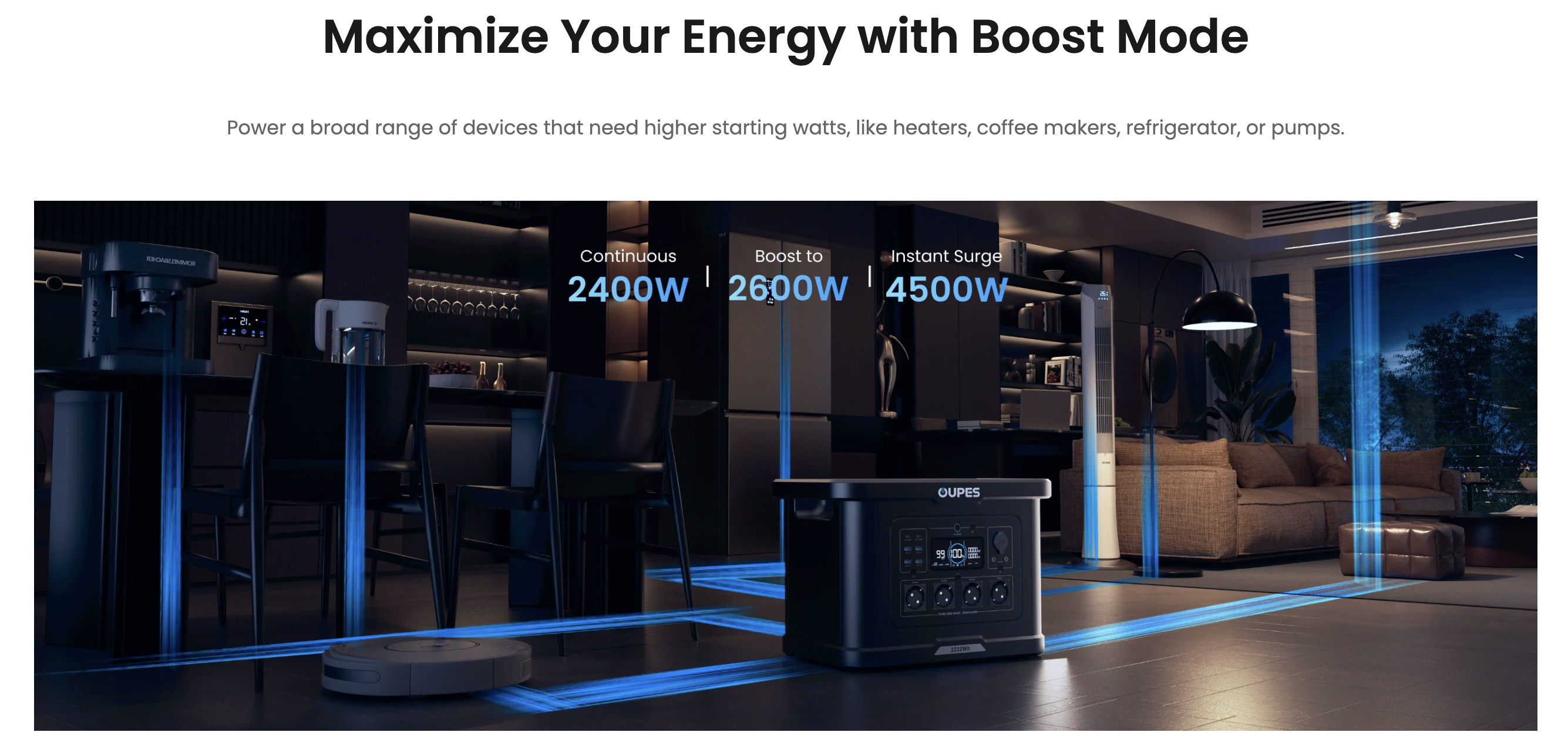 - Потужність у буст-режимі: 2600 Вт для вимогливих приладів.