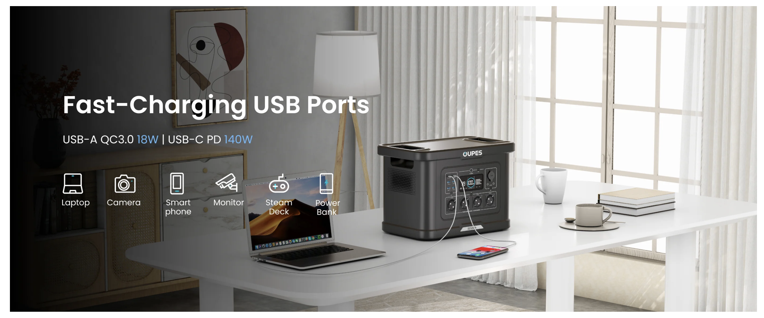 - Кількість USB-C портів: два по 140 Вт для швидкого заряджання.