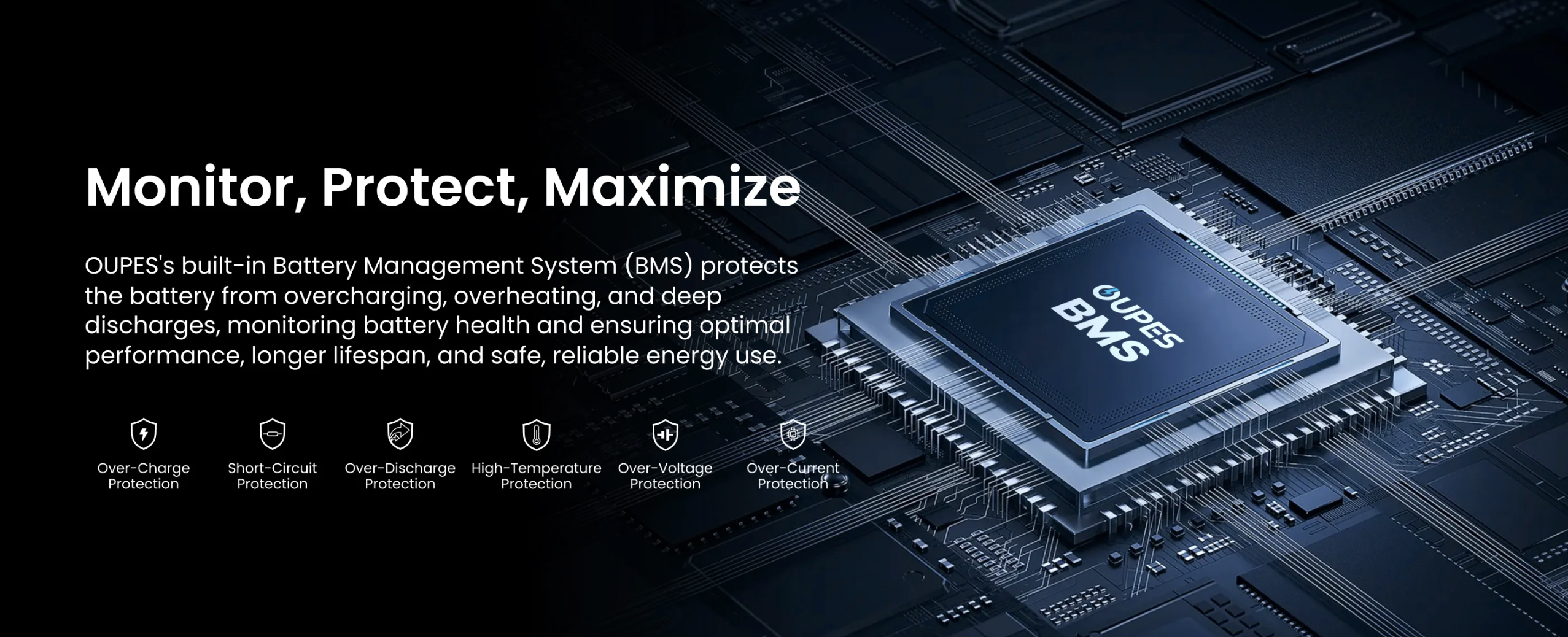 - Система BMS: вбудована для захисту акумулятора.